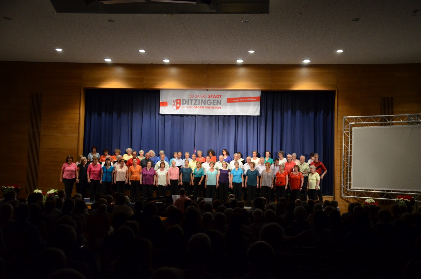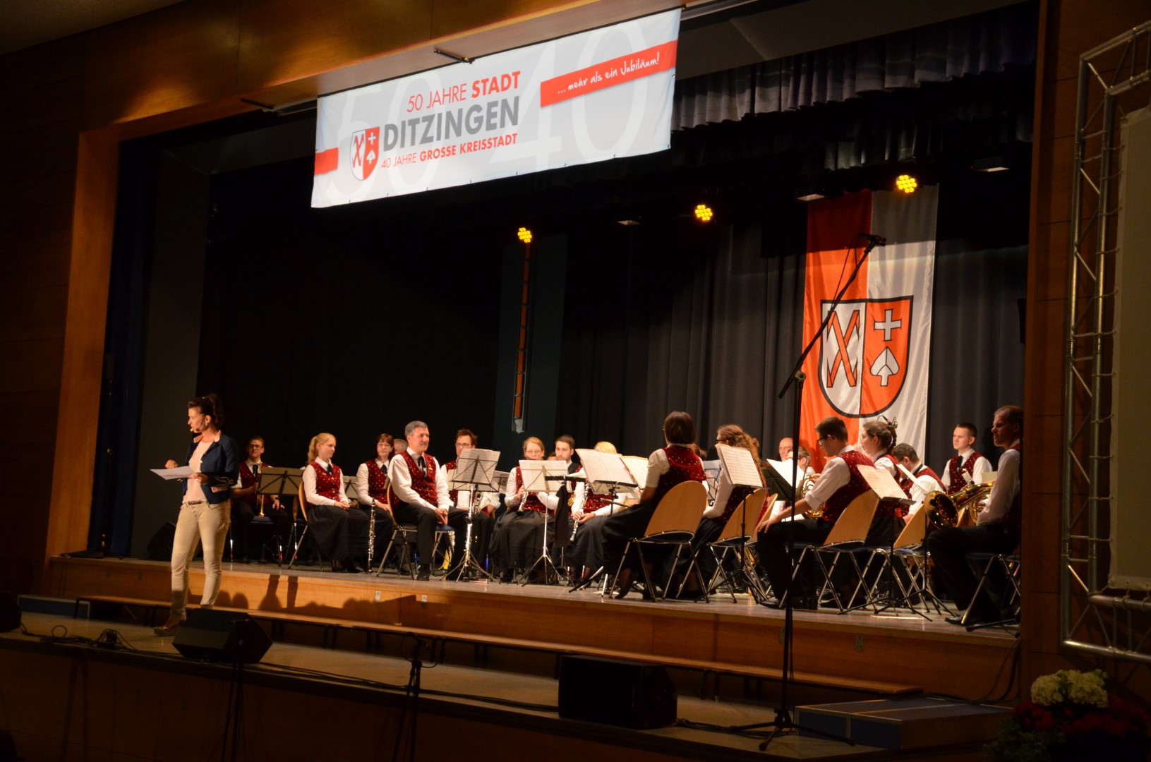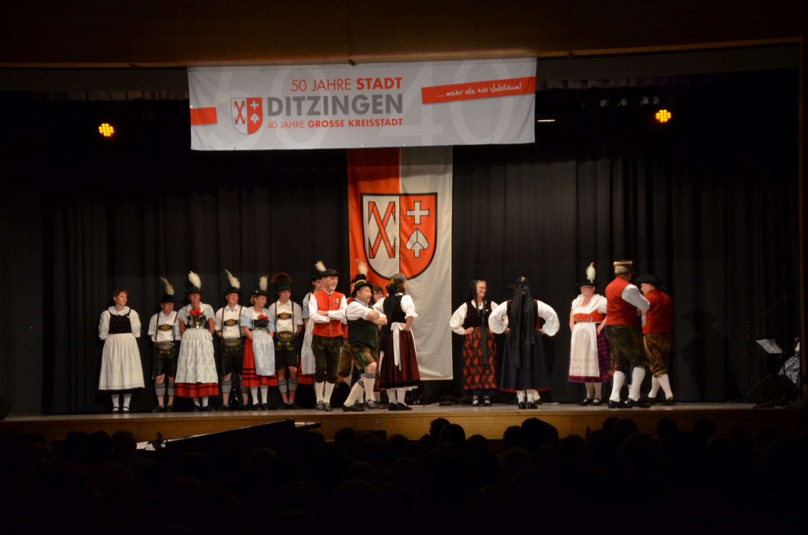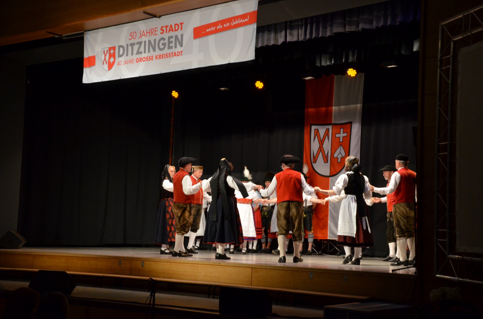 Mit Tanz und Musik überbrachte die Karnevalsgesellschaft Titzo der Stadt Ditzingen ihre Glückwünsche zum Doppeljubiläum. 50 Jahre Stadt und 40 Jahre Große Kreisstadt – das muss gefeiert werden.